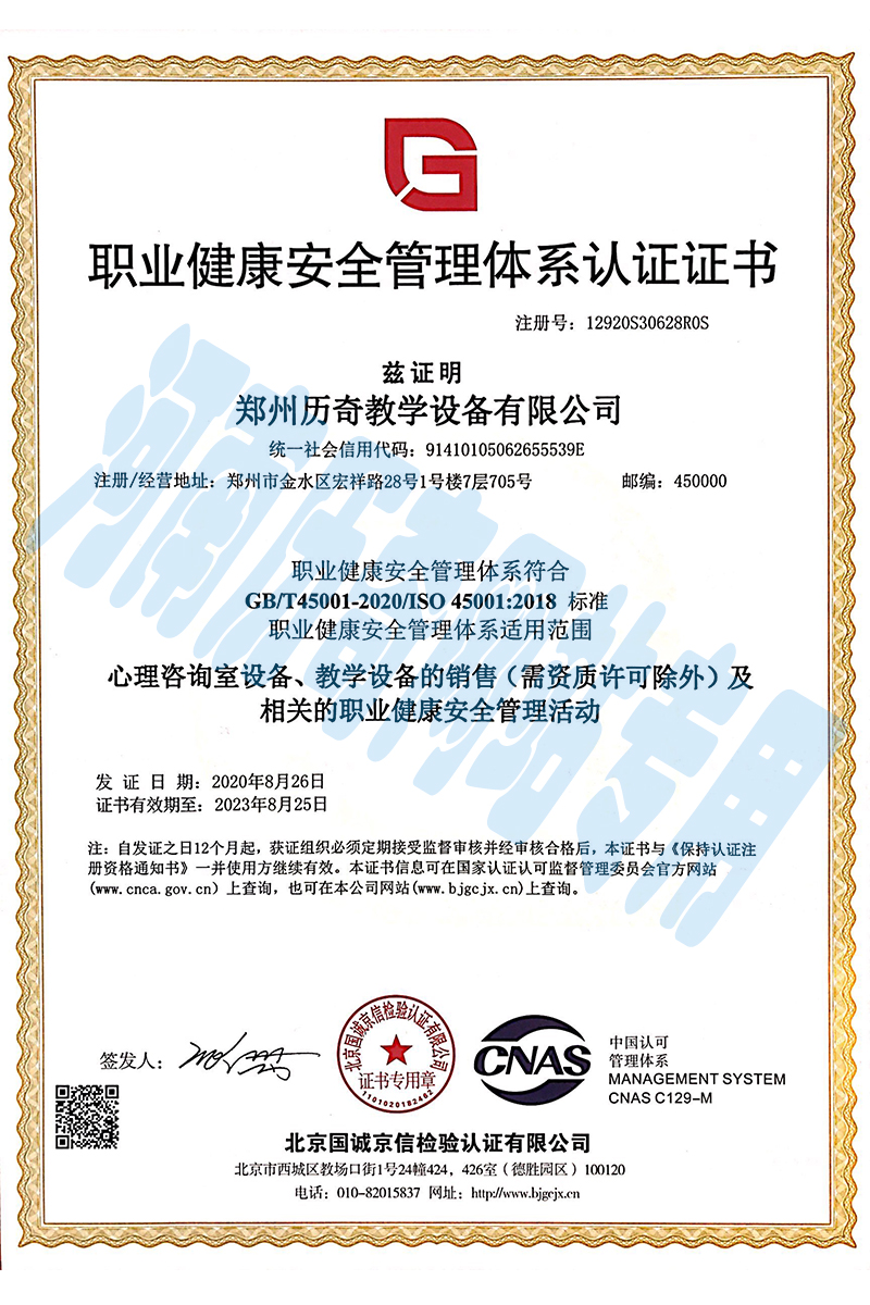職業健康安全管理系體系認證證書